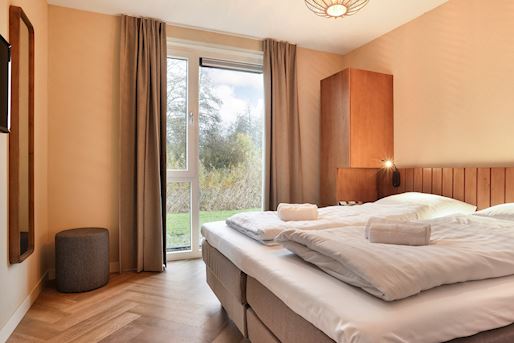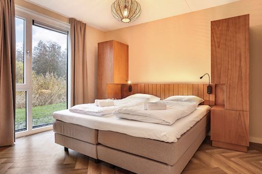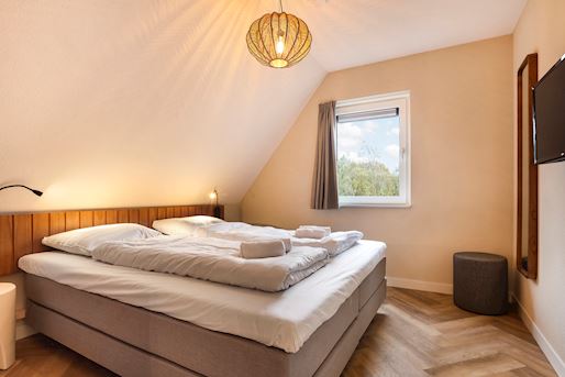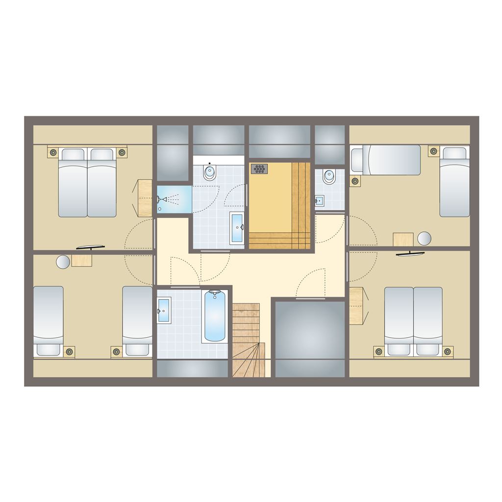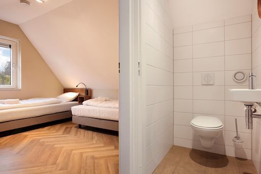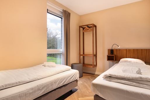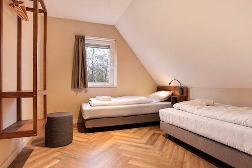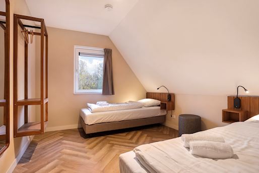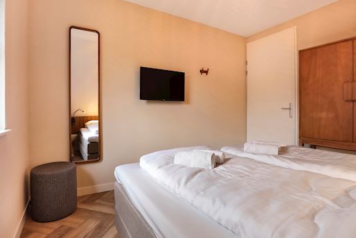 - Vier Schlafzimmer mit jeweils zwei Boxspring-Einzelbetten