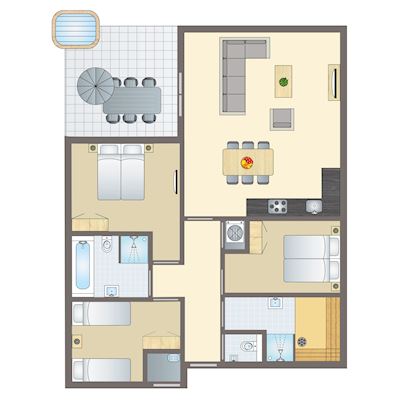 Abweichungen bei der Einteilung, Beschreibung und Abbildung des Grundrisses, der Ausstattungen und der Bilder sind möglich.