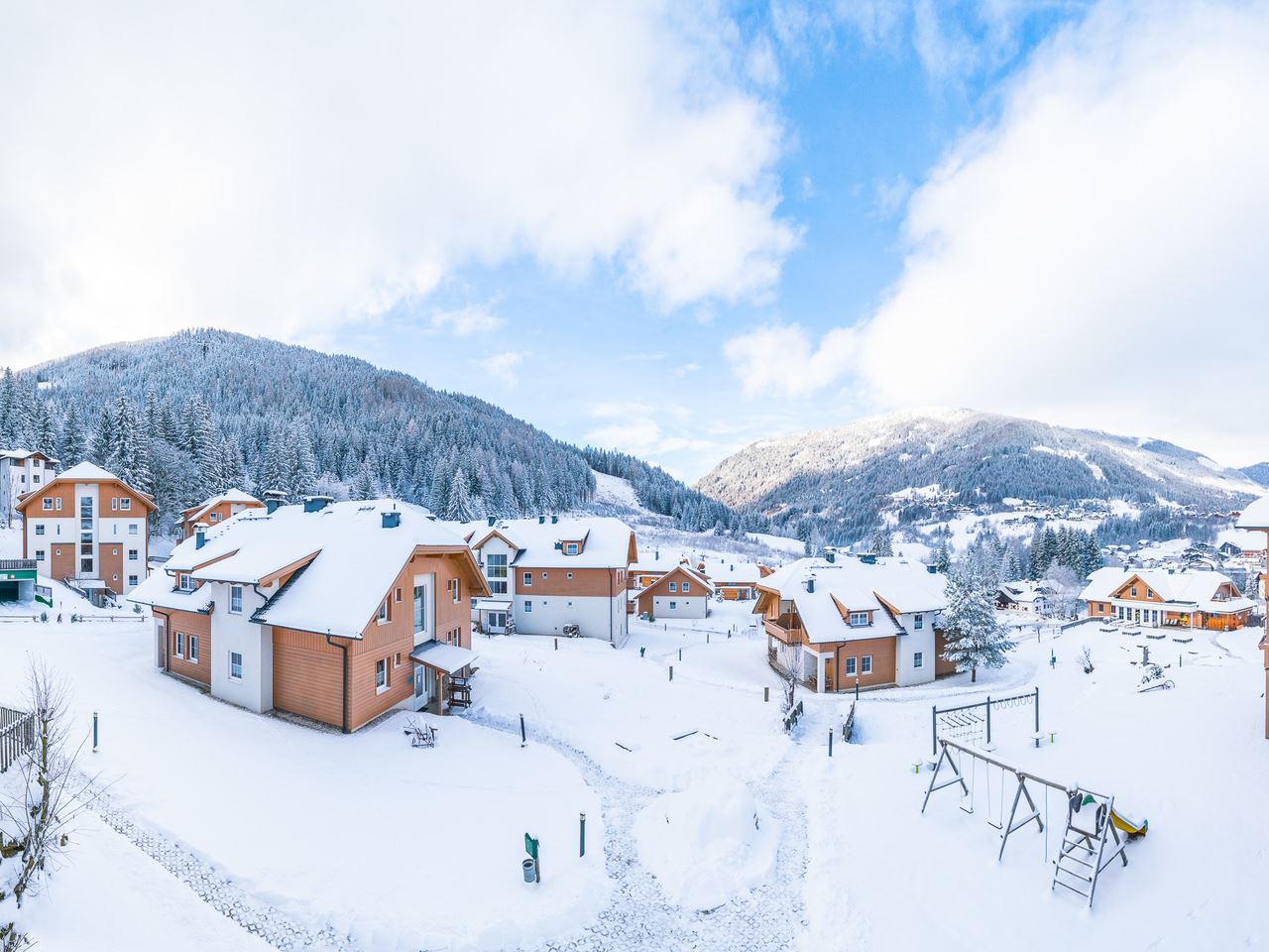 Der zwischen 1.100 und 2.055 Metern Seehöhe gelegene Weltcuport liegt auf der sonnenverwöhnten Alpensüdseite. Das Skigebiet beginnt direkt am Park und sorgt für ein bequemes Ski in & out. Über 100 bestens präparierte Pistenkilometer und 24 Liftanlagen versprechen Abwechslung und Spaß im Skigebiet Bad Kleinkirchheim.