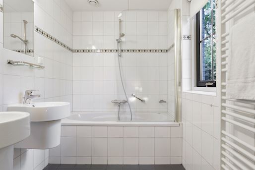 - Badezimmer mit Dusche und Doppelwaschbecken auf der ersten Etage