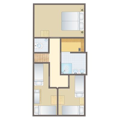 - Drei Schlafzimmer mit jeweils zwei Auping Boxspring-Einzelbetten auf der ersten Etage