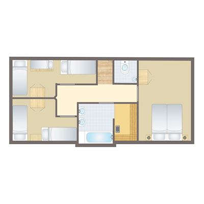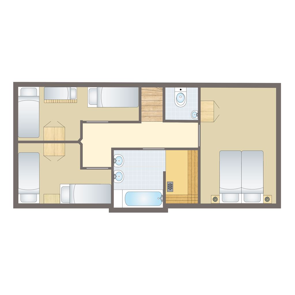 • Drei Schlafzimmer mit jeweils zwei Auping Boxspring-Einzelbetten auf der ersten Etage