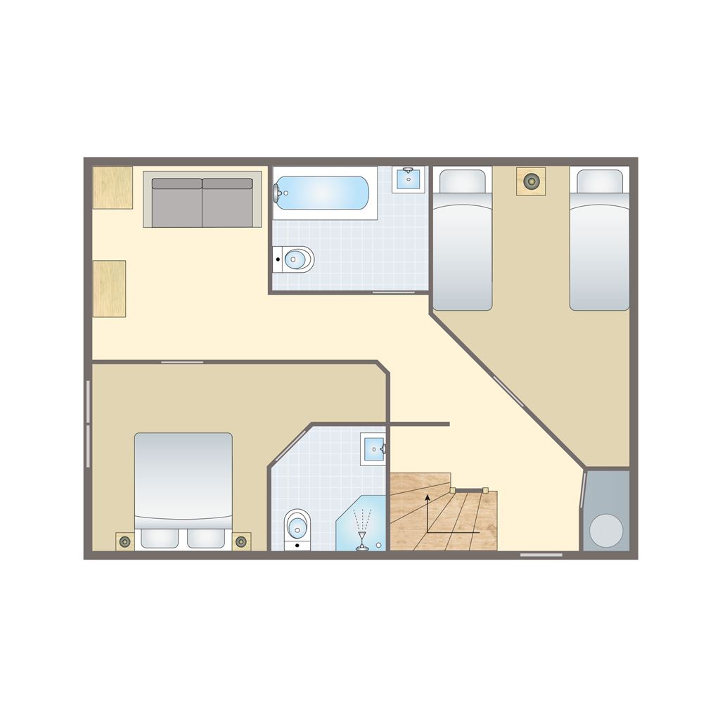 - Badezimmer (vom Schlafzimmer begehbar) mit Dusche und WC