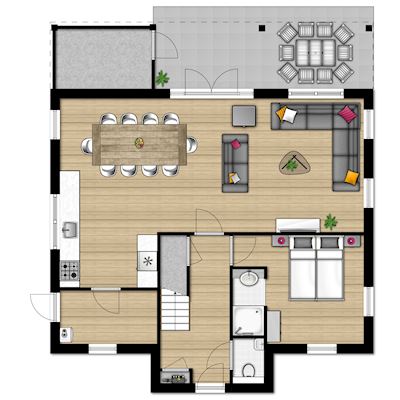 - Badezimmer (vom Schlafzimmer begehbar) mit Dusche im Erdgeschoss