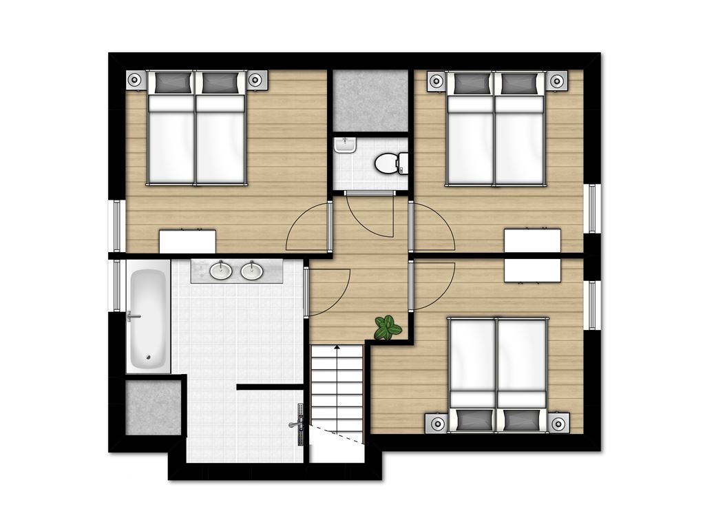 - Badezimmer (vom Schlafzimmer begehbar) mit Dusche im Erdgeschoss