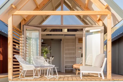 Die Strandhäuser, Dünenlodges und Stadtvillen in Roompot Resort Vlissingen verbinden Stil mit Komfort. Die Wände sind maritim gestaltet, die Möbel gemütlich und die Öfen mit Holz befeuert. Die Gärten sind von Schilf und hohem Gras umgeben, während die Stadtvillen einen sonnigen, nach Süden ausgerichteten Garten und ein begrüntes Dach haben. Hier dreht sich alles darum, das Strandleben zu genießen. Von den Strandhäusern aus ist der Strand Dein Vorgarten: Du wachst mit einem wunderschönen Blick auf das Meer auf und hörst das sanfte Rauschen der Wellen im Hintergrund. Tritt mit Deinen Füßen direkt in den Sand und starte in den Tag.