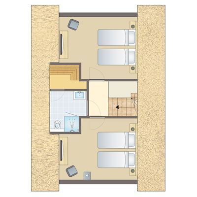 - Badezimmer mit Sonnendusche und WC auf der ersten Etage