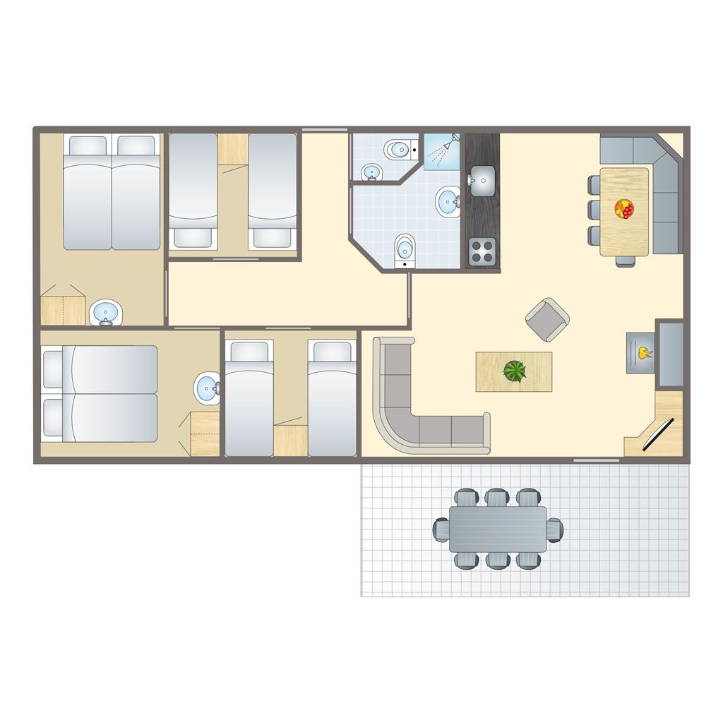 - Zwei Schlafzimmer mit jeweils zwei Boxspring-Einzelbetten