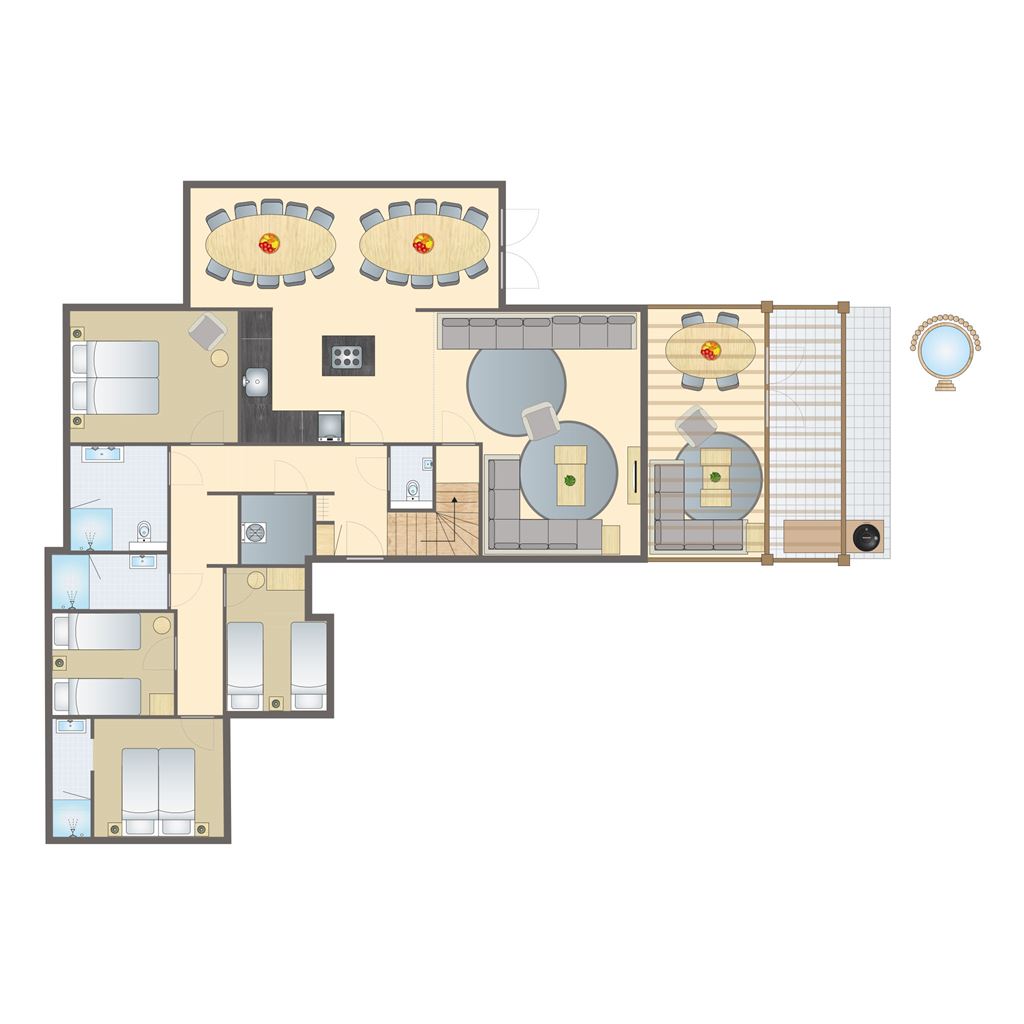 - Fünf Schlafzimmer mit zwei Einzelbetten