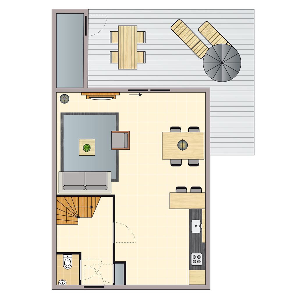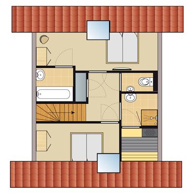 - Badezimmer (vom Schlafzimmer begehbar) mit Whirlpool auf der ersten Etage