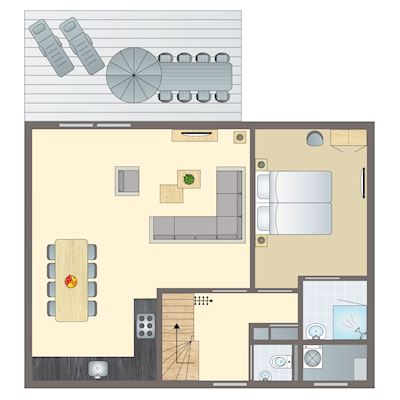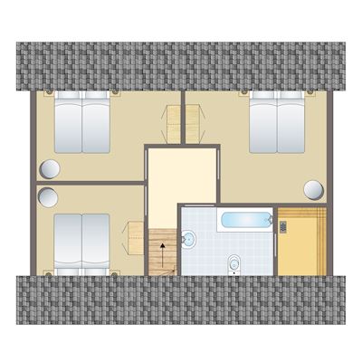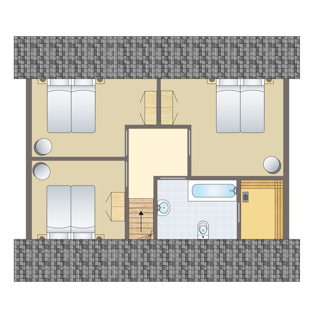 - Drei Schlafzimmer mit jeweils zwei Boxspring-Einzelbetten auf der ersten Etage