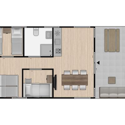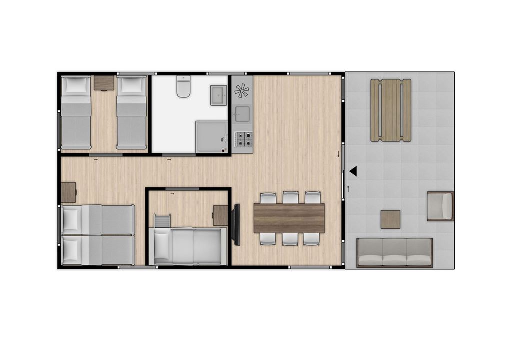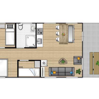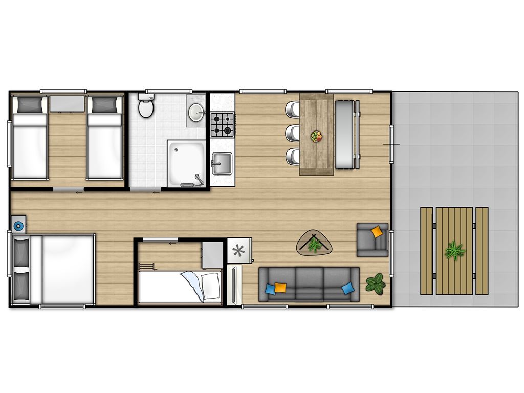 - Zwei Schlafzimmer mit jeweils einem Etagenbett