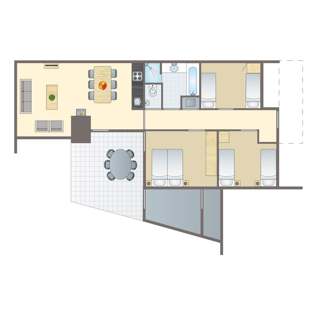 - Zwei Schlafzimmer mit jeweils zwei Boxspring-Einzelbetten
