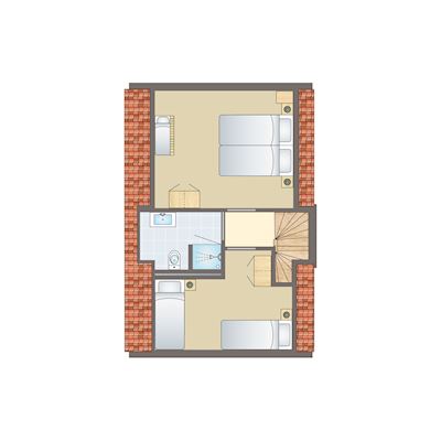 - Schlafzimmer mit zwei Boxspring-Einzelbetten auf der ersten Etage