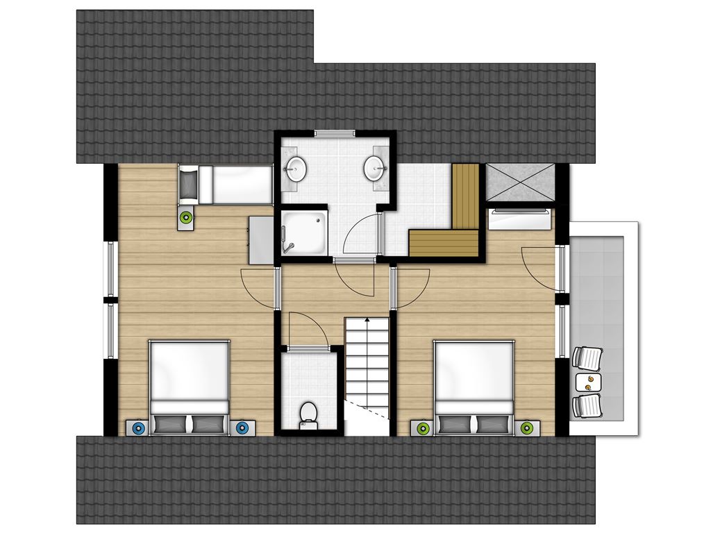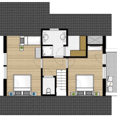 - Schlafzimmer mit zwei Boxspring-Einzelbetten