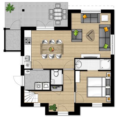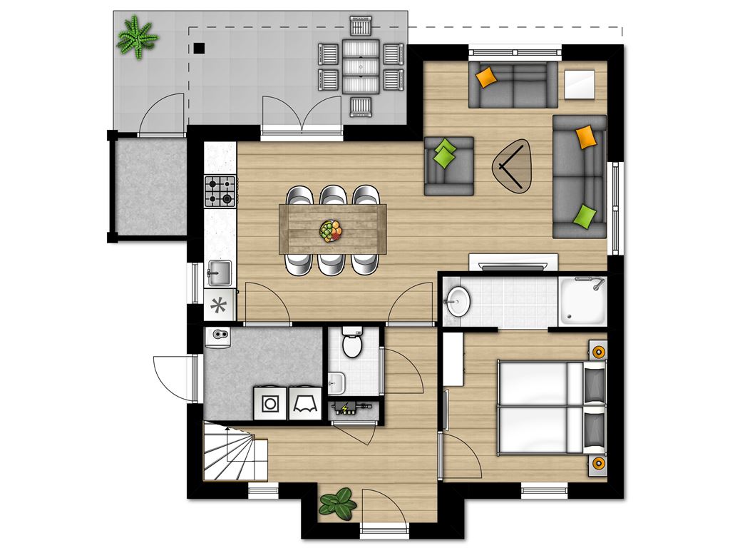 - Als Sonderwunsch buchbar: überdachte Terrasse